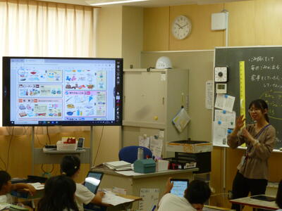 タブレットを使って、塩浜ふるさと防災科の学習です。ゴミはどのように分類されるか、みんなで考えました。