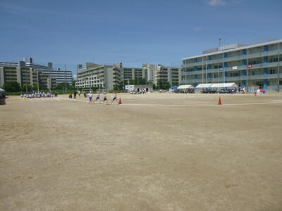 リレーの練習風景です。バトンパスはどのチームも上手でした。