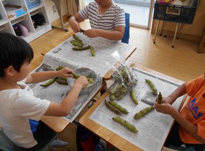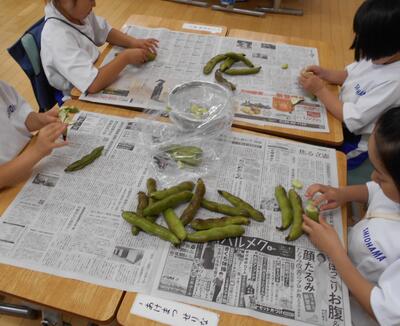 この日の給食には、1年と2年生が剥いてくれた そらまめ が入っていました。