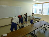 9年生を中心とした、縦割り清掃グループの