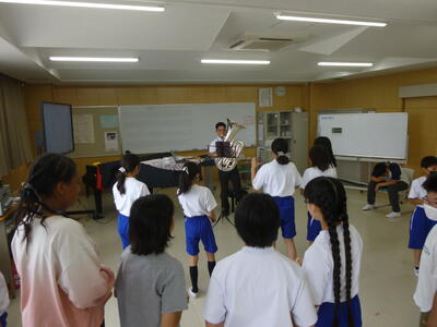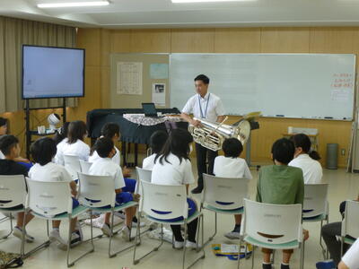 得意のチューバを奏でながら、授業をしました。ぜひ、よい先生になってください。