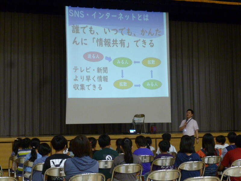 市川市教育委員会の少年センターから講師の先生をお招きして、5、6年生それぞれのクラスでネットトラブル防止教室を行いました。