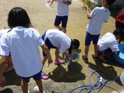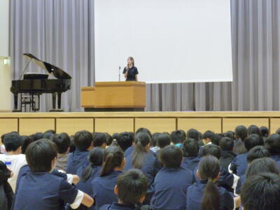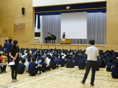 学習の成果を全校児童生徒に発表する、塩浜集会。