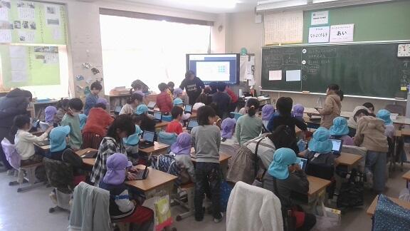 1年生の教室で、1時間タブレットを使用しながら学習を