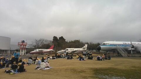 航空科学博物館の芝生でお弁当を食べた後、館内の見学をしました。