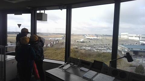 飛行機や空港について学んだり、目の前で飛行機の離着陸を見たりと