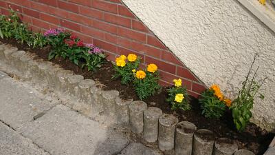 飼育栽培委員会は、昇降口前の階段下の花壇に花を植えました。