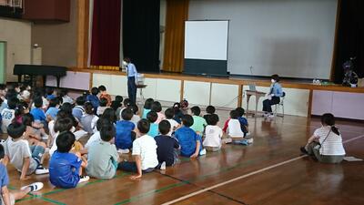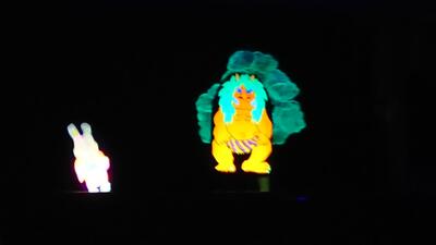 読み聞かせボランティア「ねぎぼうず」さんによるブラックライトシアターを1年生が見学しました。