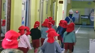 集合後、7:45には健康観察を終え、学校を出発しました。
