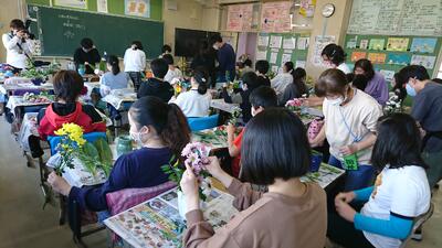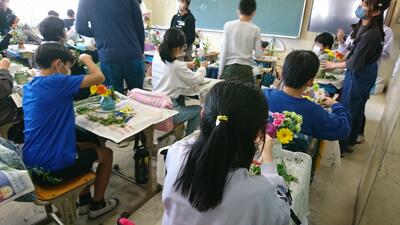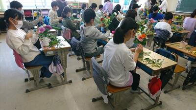 PTA会長さんを講師に招いて、6年生が、生け花を教えていただきました。