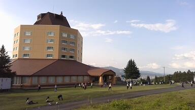 自然教室、夕食前に芝生での自由時間です。稲刈りで