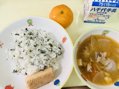 わかめご飯 いかの香味焼き 豚汁 冷凍みかん 牛乳