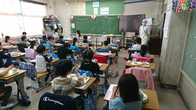 今日から1年生も給食が始まりました。初めての給食はたくさん食べられたかな?