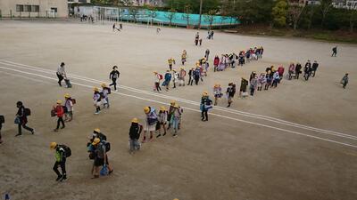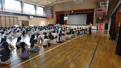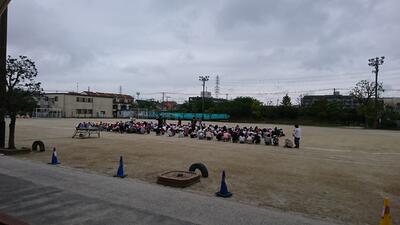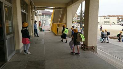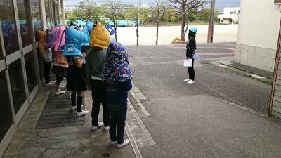 4月18日月曜日に、避難訓練を行いました。雨が降ったため一次避難のみ全校児童が行い、避難経路の確認を1年生のみ実施しました。