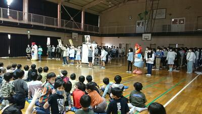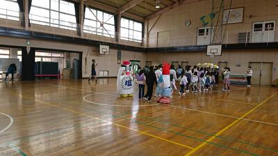 塩焼小のマスコットキャラクターの「しーおくん」と「やっきーちゃん」とも触れ合いました。