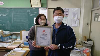日頃からご協力いただいているベルマーク回収ですが、累計400万点を達成し、賞状をいただきました。