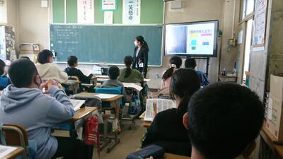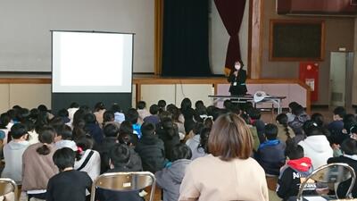 助産師の先生を招いて、5年生の児童を対象に、学校保健講演会を行いました。いのちの誕生や大人に近づく体と心について考える機会になりました。