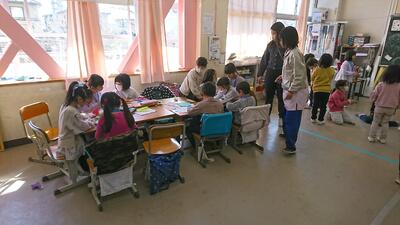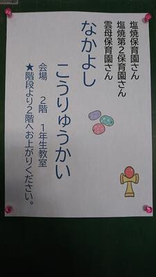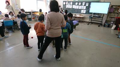 1年生1.2.3組が、2月21日に、幼稚園、保育園の年長組の園児を招いて、なかよし交流会を行いました。