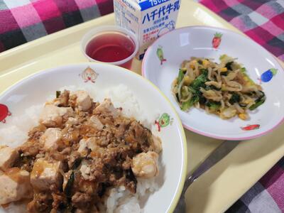 4月18日の給食 投稿日時 : 2023/04/18 編集長 ごはん 麻婆丼 コーンのナムル グレープゼリー 牛乳 {{options.likeCount}} {{options.likeCount}}