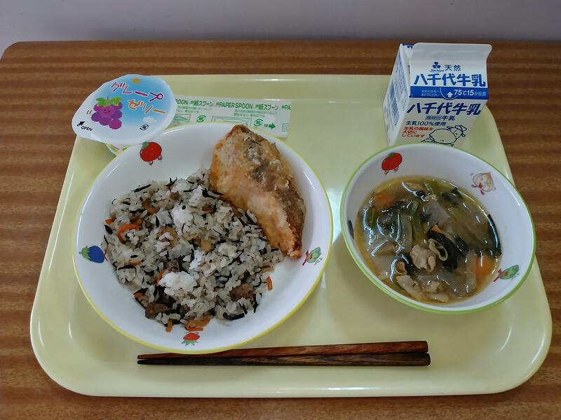 2023年3月2日の給食 投稿日時 : 2023/03/02 編集長 3月2日(木) ・牛乳 ・ひじきご飯 ・白身魚の和風揚げ ・豚汁 ・グレープゼリー(既製品) {{options.likeCount}} {{options.likeCount}}