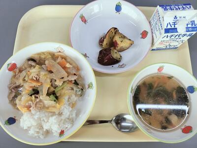 今日は「おおきな おおきな おいも」の本から「大学いも」が出ました。
