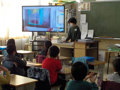 朝の学力推進時間で図書委員さんが1年生、2年生、3年生に読み聞かせを行いました。