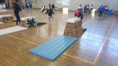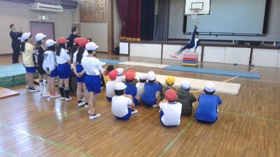 千葉県のスポーツ振興課の事業で,トップアスリートの派遣授業を行いました。ドイツワールドカップ種目別あん馬の銀メダリスト,全日本学生体操競技選手権などに出場した選手をお招きして,跳び箱の指導をしていただきました。多くの子が台上前転の技能が上がり,とても楽しく授業を行うことができました。実際のあん馬のデモンストレーションも見ることができ,子どもたちはとても興奮した様子でした。ご指導いただいたお二人の選手,ありがとうございました。