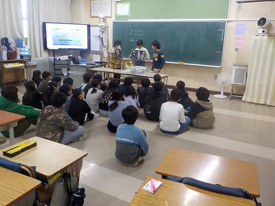 西部防災センターの方に来ていただき、防災についての学習をしました。