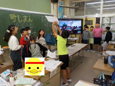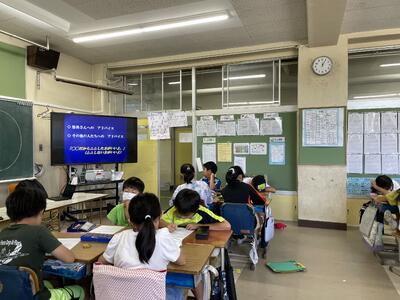 2日間に分けて南新浜小学校と浦安市立南小学校によるオンライン交流を実施しました。タブレットを使い、市川市と浦安市の「まち自慢」をしました。