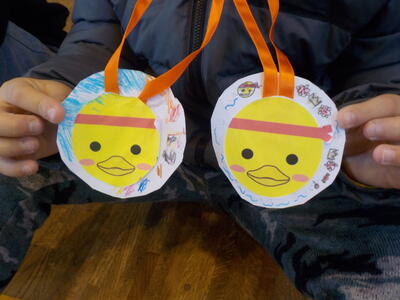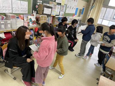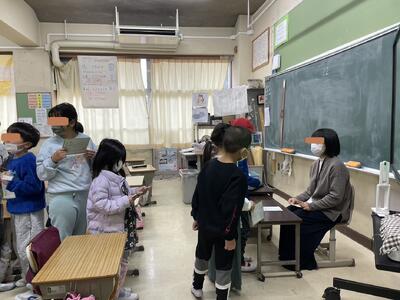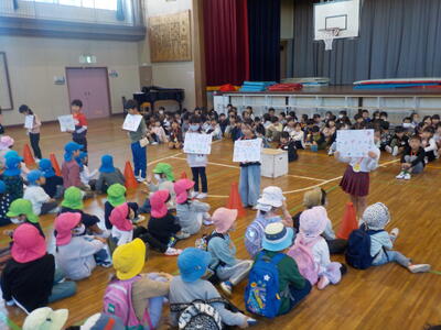 南新浜小で、近隣の幼稚園や保育園の園児たちと交流会を行いました。1年生は園児を案内をしたり、手作りのメダルを渡したり、歌を披露したり、読み聞かせを行ったりしました。11園から約140名の園児たちが来てくれました。