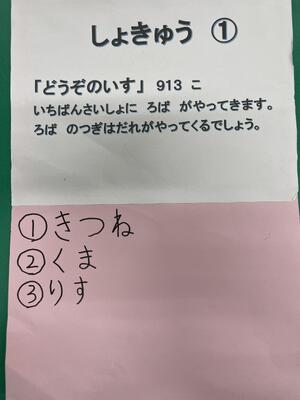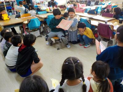 1、2年生に中央図書館の方が読み聞かせに来てくださいました。楽しいお話で、心が和やかになりました。