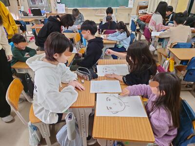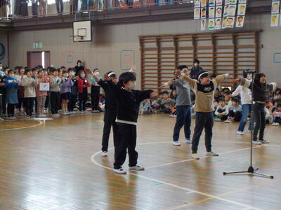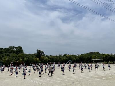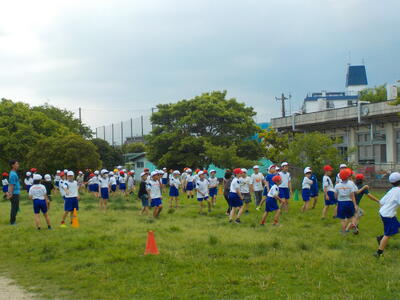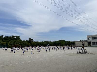 ペア学年で体力テストのシャトルラン計測に取り組んでいます。上の学年が一緒に走り、ペースをつかめるように工夫したり、応援したりしていました。やさしい姿とたくましく頑張る姿がたくさん見られました。