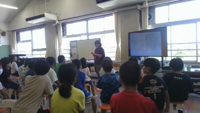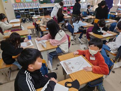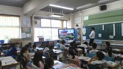 一部ですが授業の様子です。音楽(1年)、図工(2年)、図工(3年)、英語(4年)、体育(5年)、書写(6年)