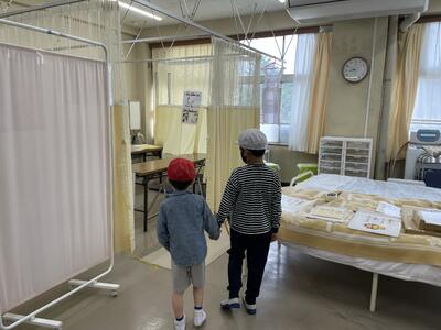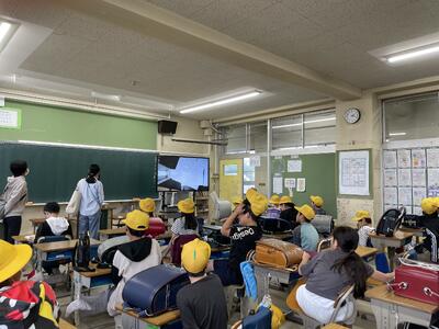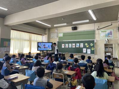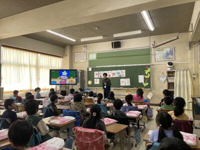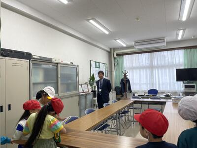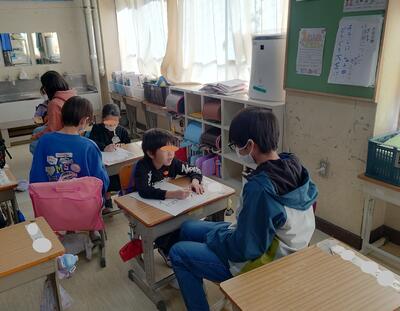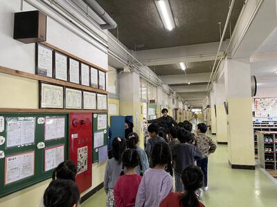 生活科の学習で、2年生が1年生に学校案内をしました。1年生は、普段見ることのない特別教室や校長室などに、目を輝かせていました。2年生が1年生にやさしく教室の説明をする様子から、昨年の入学時からの大きな成長を感じました。