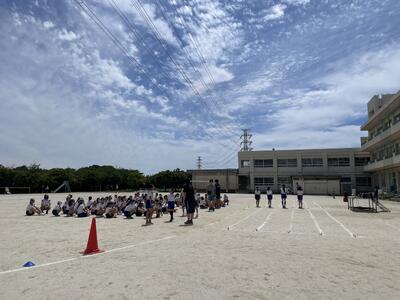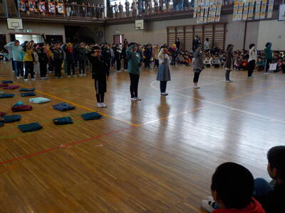 隊形移動の学習をしました。みんなの動きを揃えられるように、周りを意識して頑張っていました。