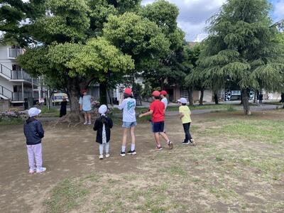 校庭でダンスの練習をしました。覚えが早く、元気に体を動かしています。