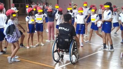 日本財団パラスポーツサポートセンターの伊吹講師をお招きして、「あすチャレ!ジュニアアカデミー」(日本財団パラスポーツサポートセンター主催)を開催しました。障がいのある方と一緒に遊ぶ方法を考え、実践することを通して、障がいへの理解とだれにでもやさしい環境づくりについて考えることができました。講師の先生、ありがとうございました。