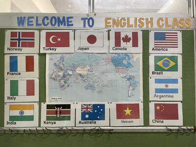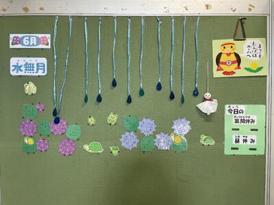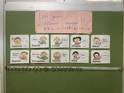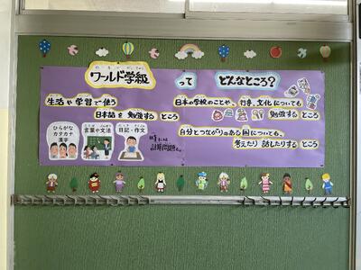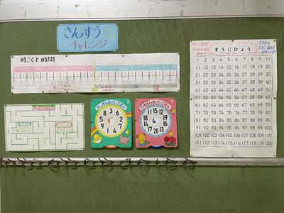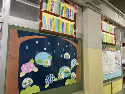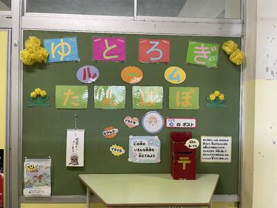 特別教室の前には、季節や学習に合った掲示物が工夫されています。