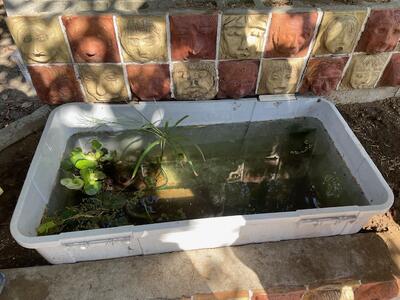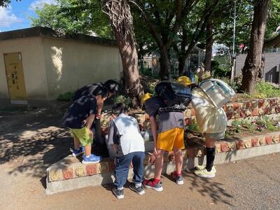 5年生の児童が花壇を掘り、水槽を入れてメダカ池を作ってくれました。みなさんもぜひのぞいてみてください。