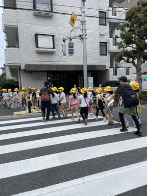 生活科の学習で、福栄公園に探検に行きました。行き帰りの安全な歩き方やマナーを守った遊び方、どんな遊具があるか、どんな人が利用しているかなどにも目を向けて学習しました。
