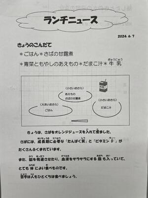 今日はお話給食でした。肉だんごスープは肉だんごがやわらかい、温まるスープでした。