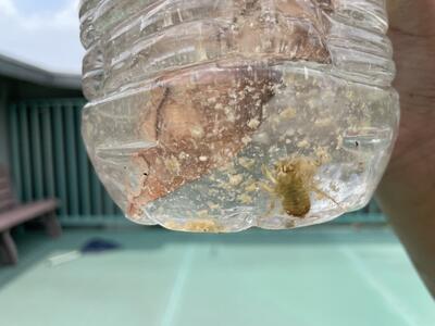 生活科の学習で、プールにいるヤゴをとりました。最初はなかなか見つからず、アメンボや抜け殻を捕まえる子もいましたが、最後は1人一匹自分の水槽に入れることができました。これからトンボになるまで大切に育てていきます。