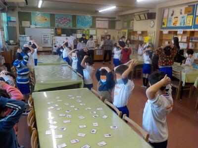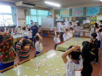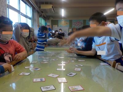 図書委員会が主催の「かるた・百人一首祭り」が行われました。今日は1年生で、業間休みの時間に行い、参加は自由です。予定では、2月1日(水)は2・3年生。3日(金)は4・5年生。7日(火)は6年生です。