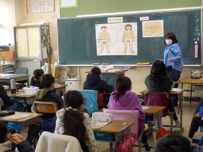 3年生は、ヤクルトのふれあいづくり推進課の方をお招きして「おなか元気教室」を実施しました。おなかの仕組み、消化の仕組みについて勉強しました。