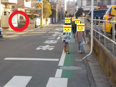 登校する時は、横に広がらずに端を歩くようにしましょう。
