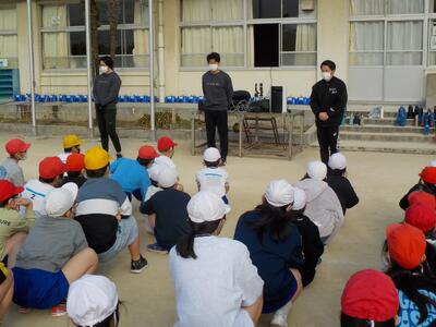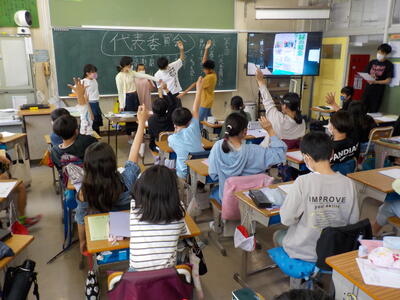 今日の朝の会では、応援団が応援の方法について説明をしました。放送で全校に説明し、低学年のクラスには応援団が分担して説明を行いました。