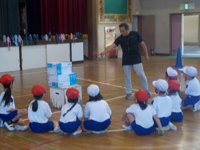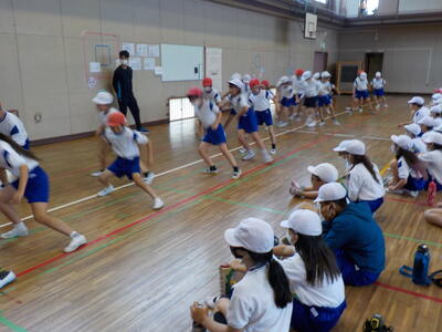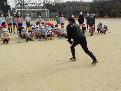 体育の「授業マイスター認定」を受けた小学校体育教科指導員の先生をお招きして、体育の授業を行いました。体つくり運動、投げ方の授業を行いました。楽しみながら体つくりを行う姿が印象的でした。