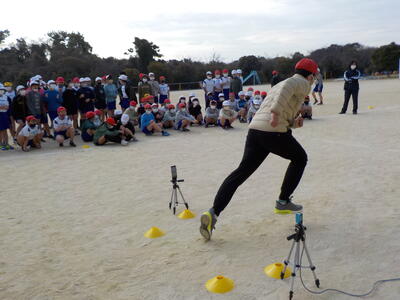 1・2校時、一般社団法人「SPORTS EXPRESS JAPAN」の3人のコーチをお招きして、「走り方」の学習をしました。全てのスポーツに共通する走る楽しさ、スプリントのコツなどを体験することができました。