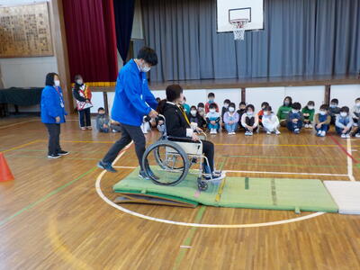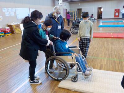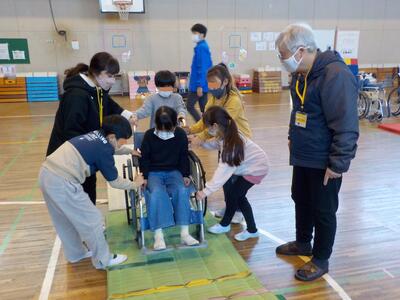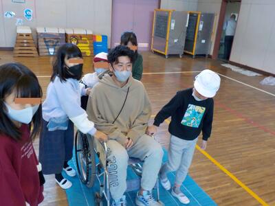 3年生は福祉教育の一環として、車いす体験を行いました。実際に車いすに乗って動くことやサポートすることが、とても大変であることに気づきました。障がいを持つ方への理解を深める体験となりました。