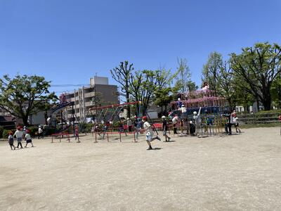 1年生は2・3校時に公園探検を行いました。今日は、西浜公園と福栄公園の2か所を探検しました。
